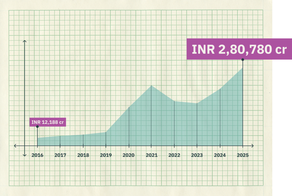 The budgetary allocation for these schemes grew by 23x in the last decade and is only likely to expand further.