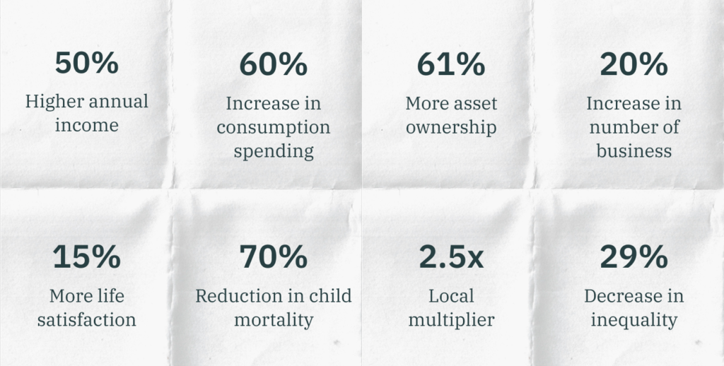 We implement programs with the most economically vulnerable communities across various contexts by providing the resources to transition from surviving to aspirational. The flexibility of cash transfers promise and deliver a wide array of outcomes at low operational costs.